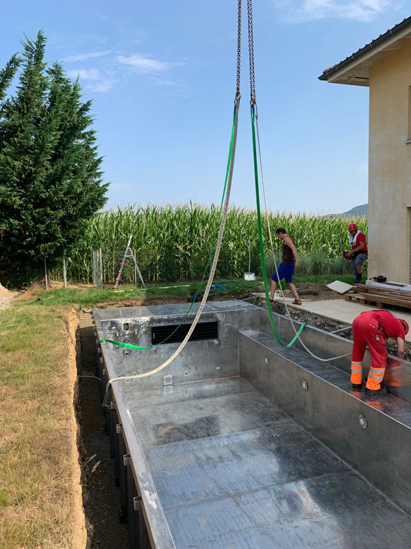 Die Poolwanne und der Techikraum sind in einem Container eingebaut. Alles besteht aus reinem, verschweisstem Chromstahl höchster Qualität, mit einer Stärke von 3mm.